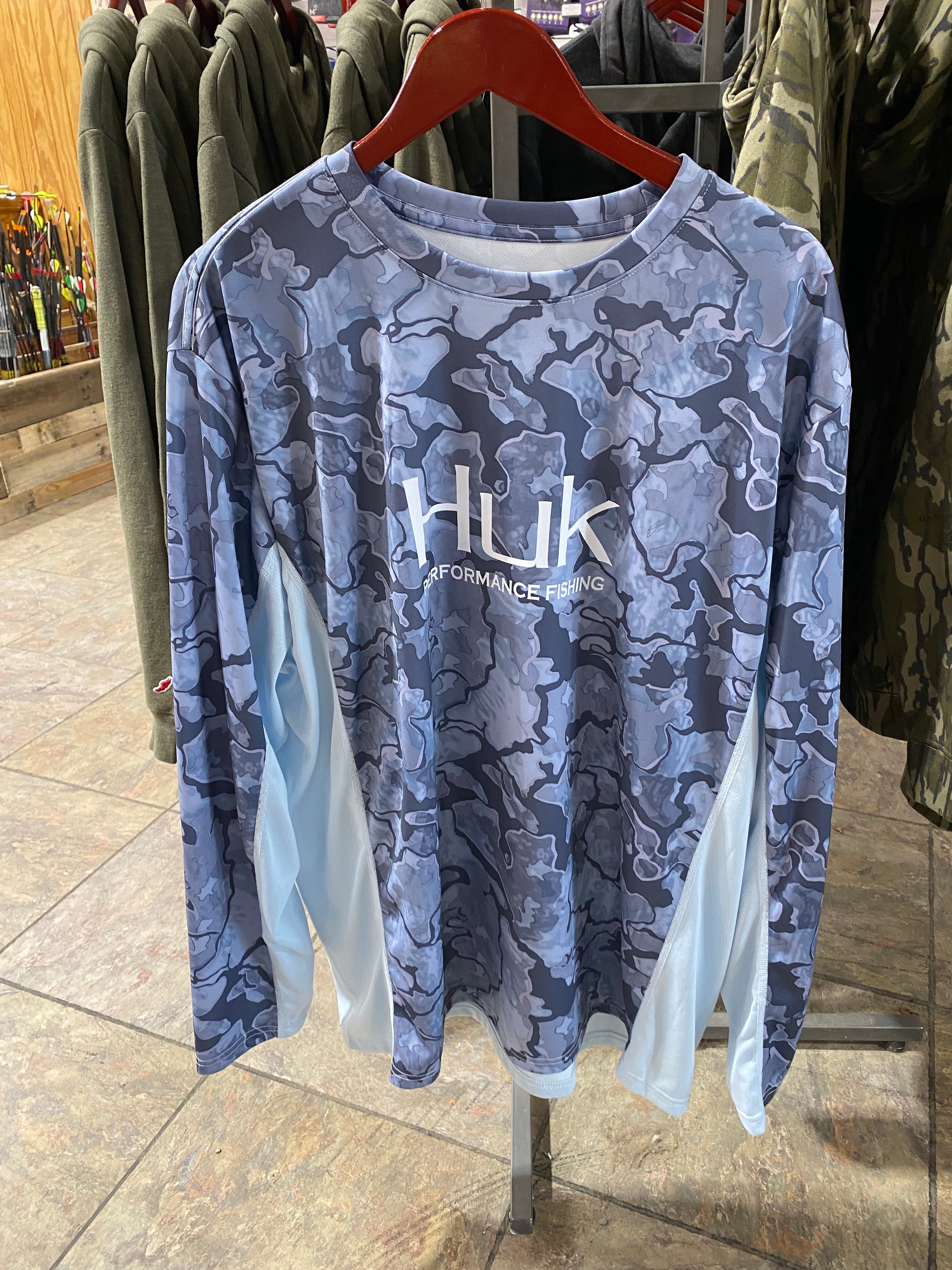 The Huk ICON X CAMO Long Sleeve is the most technically advanced performance fishing shirt, designed for hardcore anglers. Comprised of Double Pony Polyester, this synthetic material spreads moisture over a larger surface area creating a rapid drying effect that cools the body after coming into contact with perspiration. The synthetic fibers allow air to pass through the shirt and contain a hydrophobic coating that transports sweat to drier areas, away from the skin.